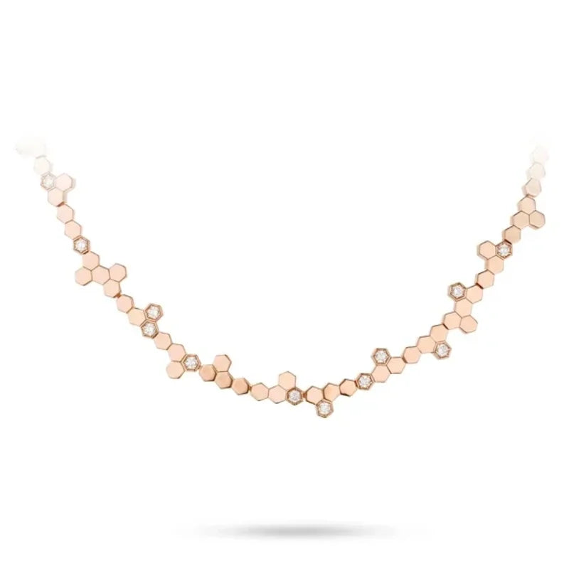 With a weight of 38.73 grams, the choker sits gracefully around the neckline while maintaining a luxurious, substantial feel. The Golden Hive Choker is an enchanting blend of sophistication and contemporary charm, perfect for moments that call for a touch of standout refinement.