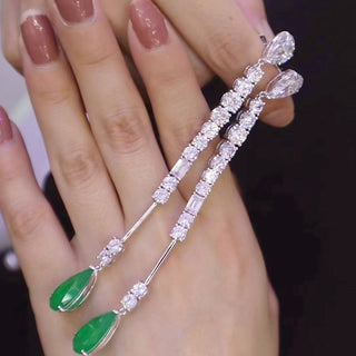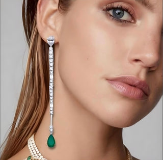 Gemini Green Studs – 9K white gold earrings with 3.8-carat emerald and lab-created sapphires, offering vibrant elegance and subtle sparkle.
