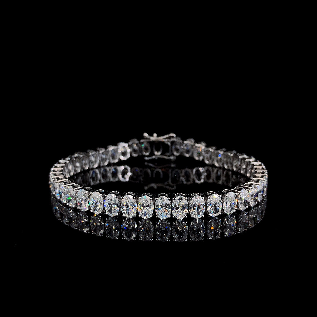 Timeless and radiant, the Classic Marquise Cut Tennis Bracelet captures the essence of refined luxury and enduring beauty. Each meticulously crafted marquise-cut lab-grown diamond, weighing 1 carat, is set in 18K white gold to create a seamless flow of light and brilliance around the wrist. With a colour grade of EF and a clarity of VVS, the stones exhibit exceptional fire and clarity, embodying the perfect balance of sophistication and sparkle.