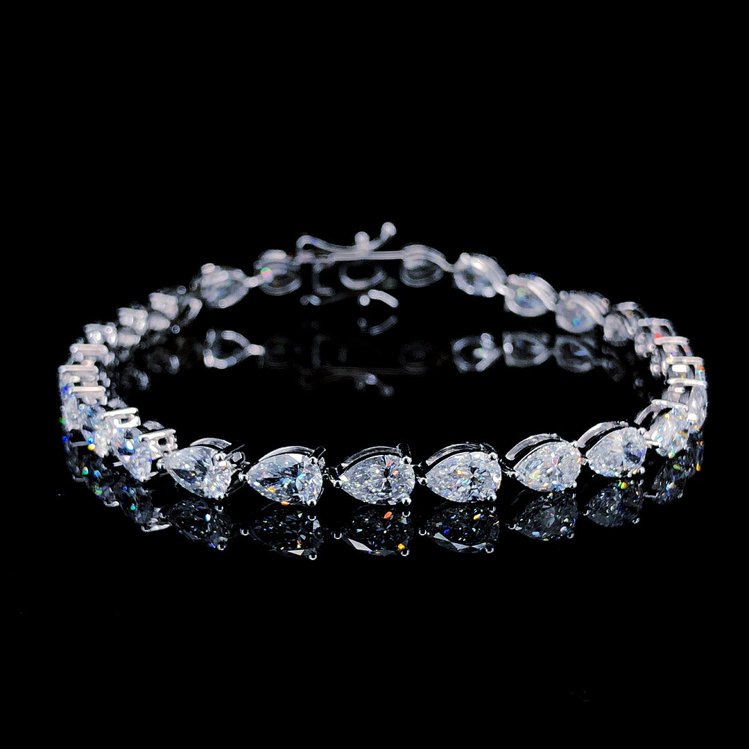 Graceful and radiant, the Pearline Bracelet embodies the poetry of light in motion. Each meticulously cut pear-shaped lab-grown diamond glistens with exceptional brilliance, delicately aligned to trace the natural curve of the wrist. Crafted in luminous 18K white gold, this bracelet exudes effortless sophistication, offering a seamless balance between timeless design and modern refinement.