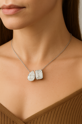 Duo d'Éclat Necklace with Pear-Shaped and Emerald-Cut Lab-Created Sapphires in Sterling Silver