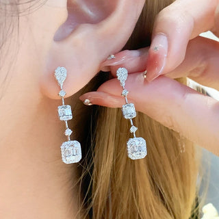 Frostlight Drop Earrings: 925 sterling silver drop earrings for women set with shimmering lab-created sapphire stones.