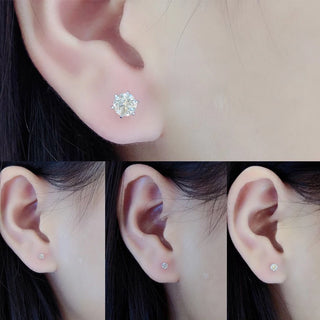 10CT Lab Diamond Flower Studs: 18K gold earrings set with ten 1-carat lab-grown diamonds arranged in a flower pattern.