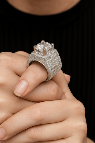 Frozen Crest Ring with D-color Moissanite in silver, gold, or rose gold finish