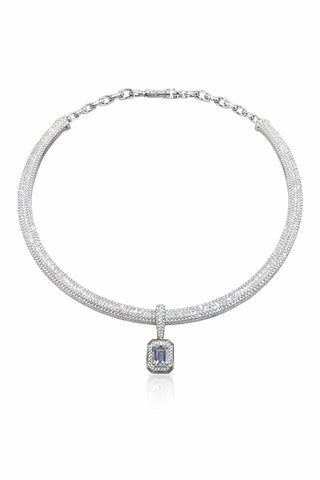 Ancestral Zamrud Collar Necklace in 925 sterling silver with pavé-set lab-created emerald sapphires.