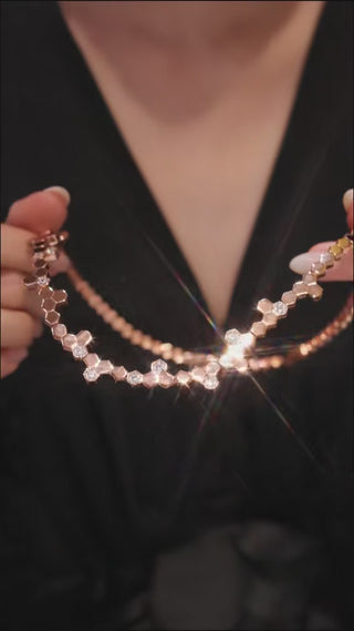 Bee My Love Necklace in 925 sterling silver with platinum plating, featuring hexagonal lab-created sapphires.