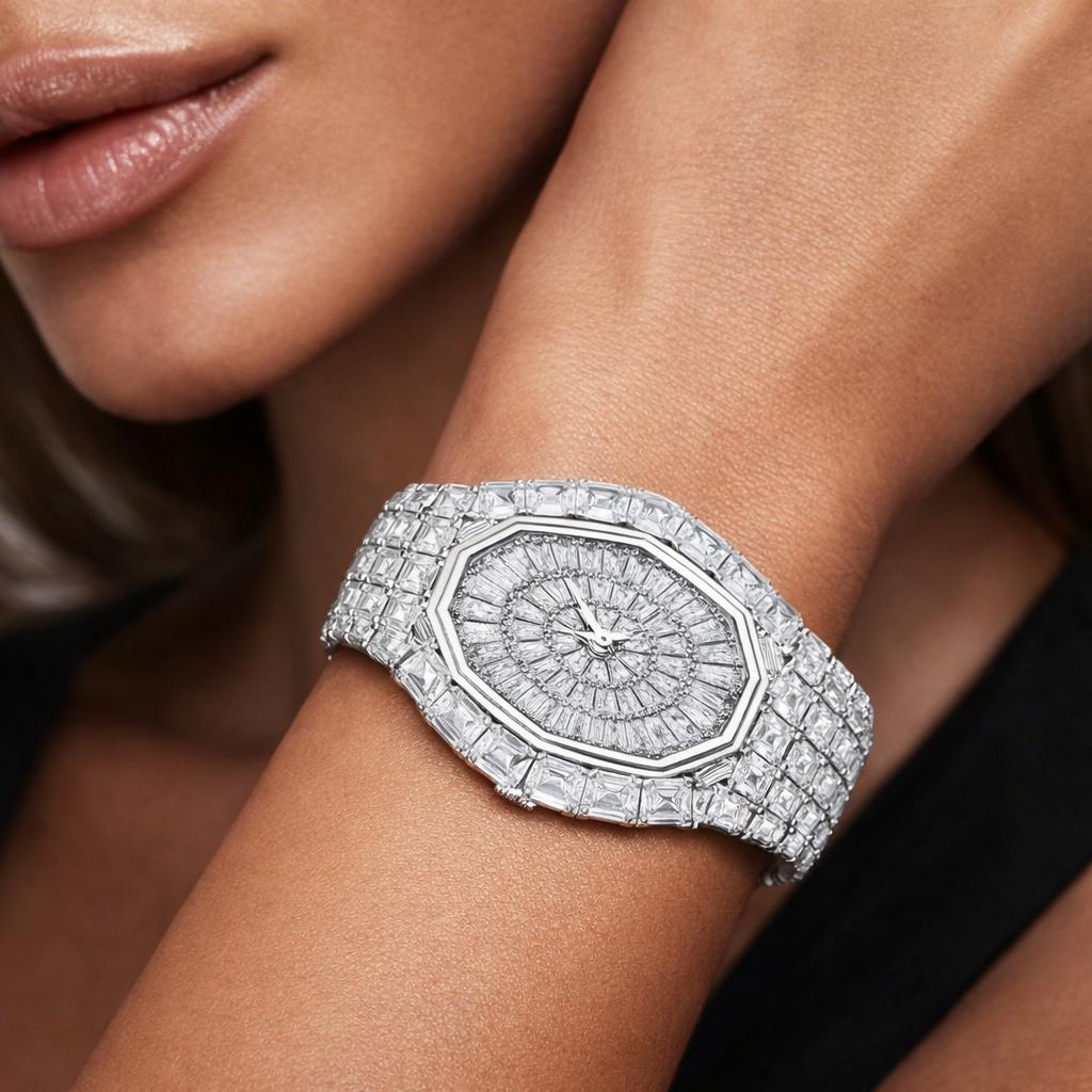 To maintain the elegance of your Diamond Hour Watch, avoid exposure to water, perfume, and harsh chemicals. Clean gently with a soft, dry cloth and store in a cool, dry space when not in use to preserve its brilliance and clarity.