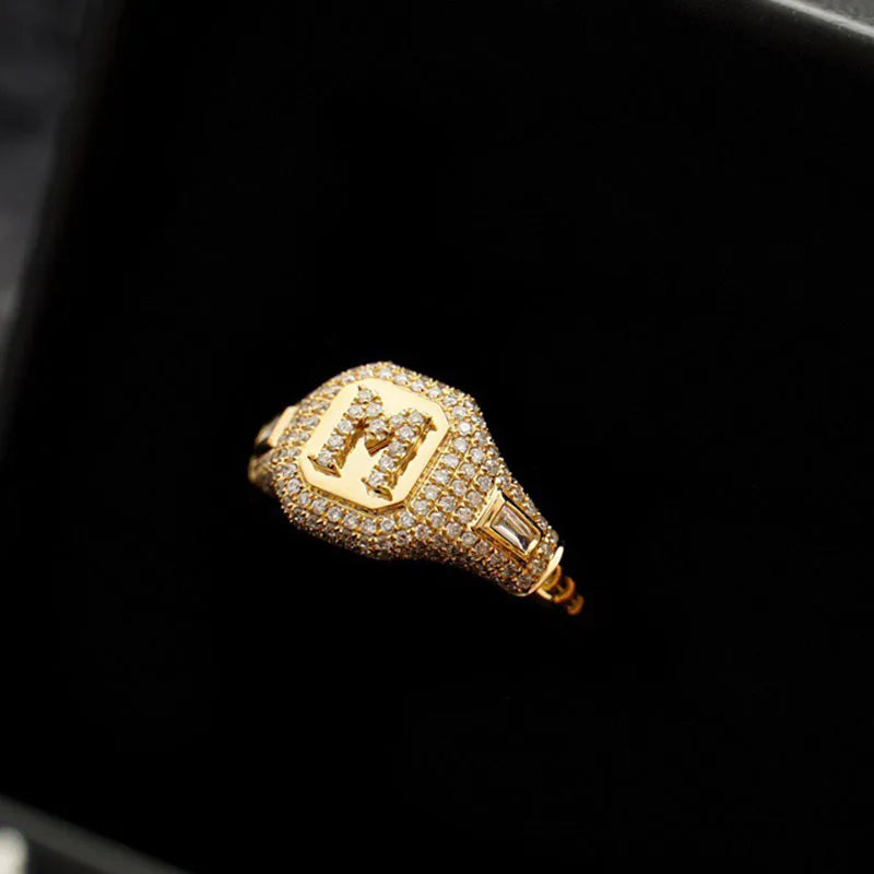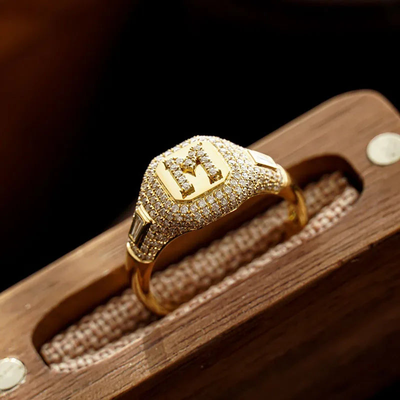 Refined yet commanding, the Signature M Sovereign Ring is a distinguished emblem of individuality and timeless style. Designed for the modern man, this initial ring features a brilliant round-cut moissanite, radiating with exceptional fire and clarity. Each facet reflects mastery and confidence, embodying the essence of sophistication with subtle personal flair.