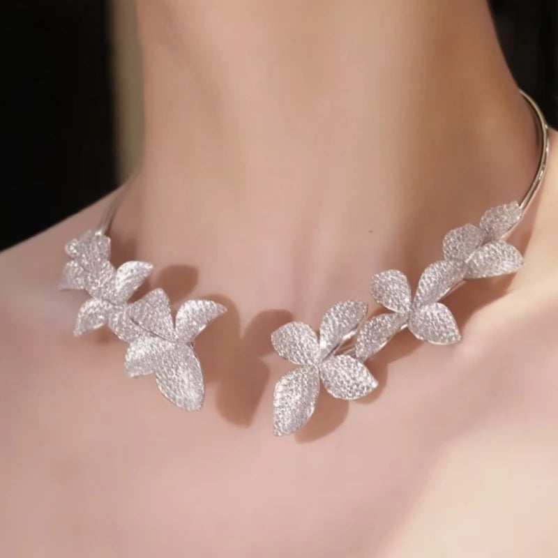 With its smooth, curved structure and meticulous detailing, the Diamond Blossom Collar sits beautifully along the neckline, adding instant sophistication to evening attire or elevating everyday ensembles with its luminous presence. A timeless blend of artistry and allure, it is perfect for those who appreciate jewellery that stands out with subtle opulence.